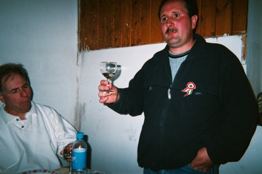 After supper, we walked downtown to one of the local watering holes to come down from our high. We were joined by a few of the Pápa locals, including Norbi (on the right, with Michael) |