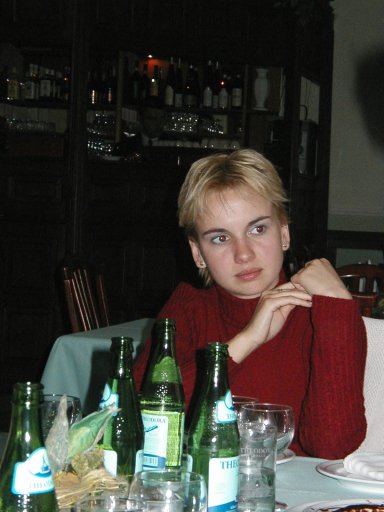 My favorite picture of Ildi (at supper after the Tata concert). |