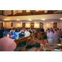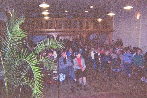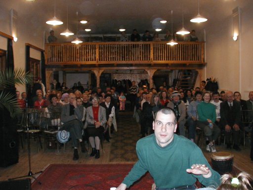 Here is what we saw from the stage in Tata. The stiff-looking couple in the front row to the left of the center aisle did not change posture or expression the entire concert. Another guy slept through the whole thing, but he's hidden in this view by the potted palm. The folks in the front row on the other side were much more appreciative and engaging, so we watched them instead. |
