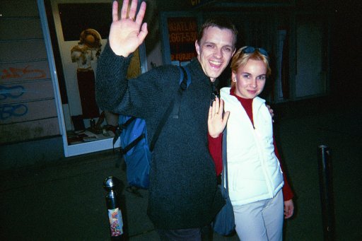 After a day of walking around Budapest, Andris and Ildi put us on a bus with instructions to get off at the fifth stop and go a few blocks to our right to find our lodging for the night. This was our last view of our Hungarian hosts as we boarded the bus. |
