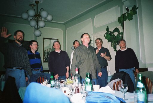 Back home, the choir rehearses every Wednesday night. After practice, most everybody heads to Old Chicago to quaff a beer and tell some lies. We were looking for a place to eat in Budapest and stumbled across this place. How could we not eat there? |